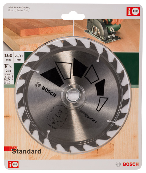 Bosch Kreissägeblatt STANDARD D= 160 mm, Bohrung= 20 mm, Z= 24